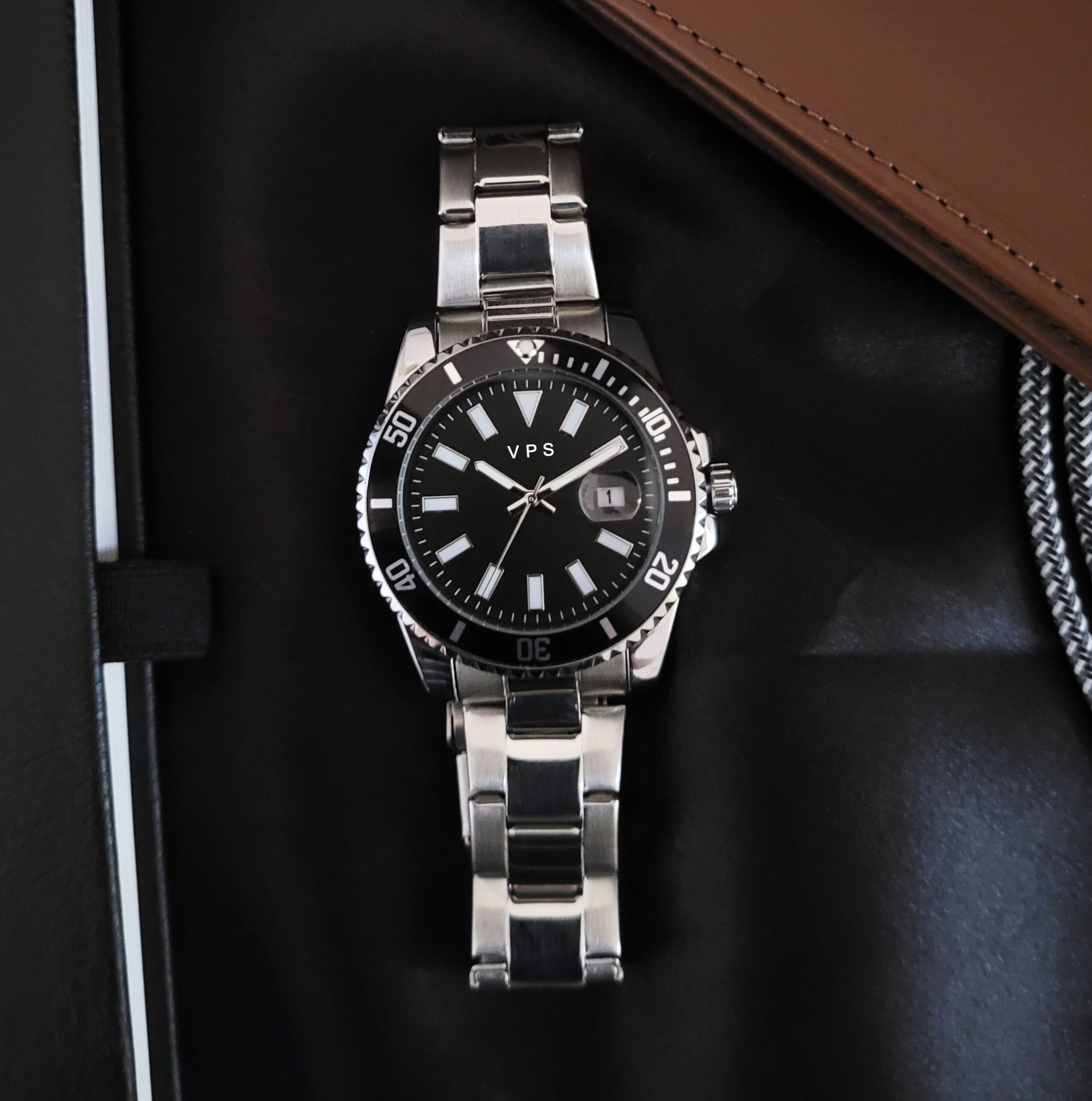 Personalized Diver Signature – Cosmic Black Dial, Steel Strap, Date Magnifier