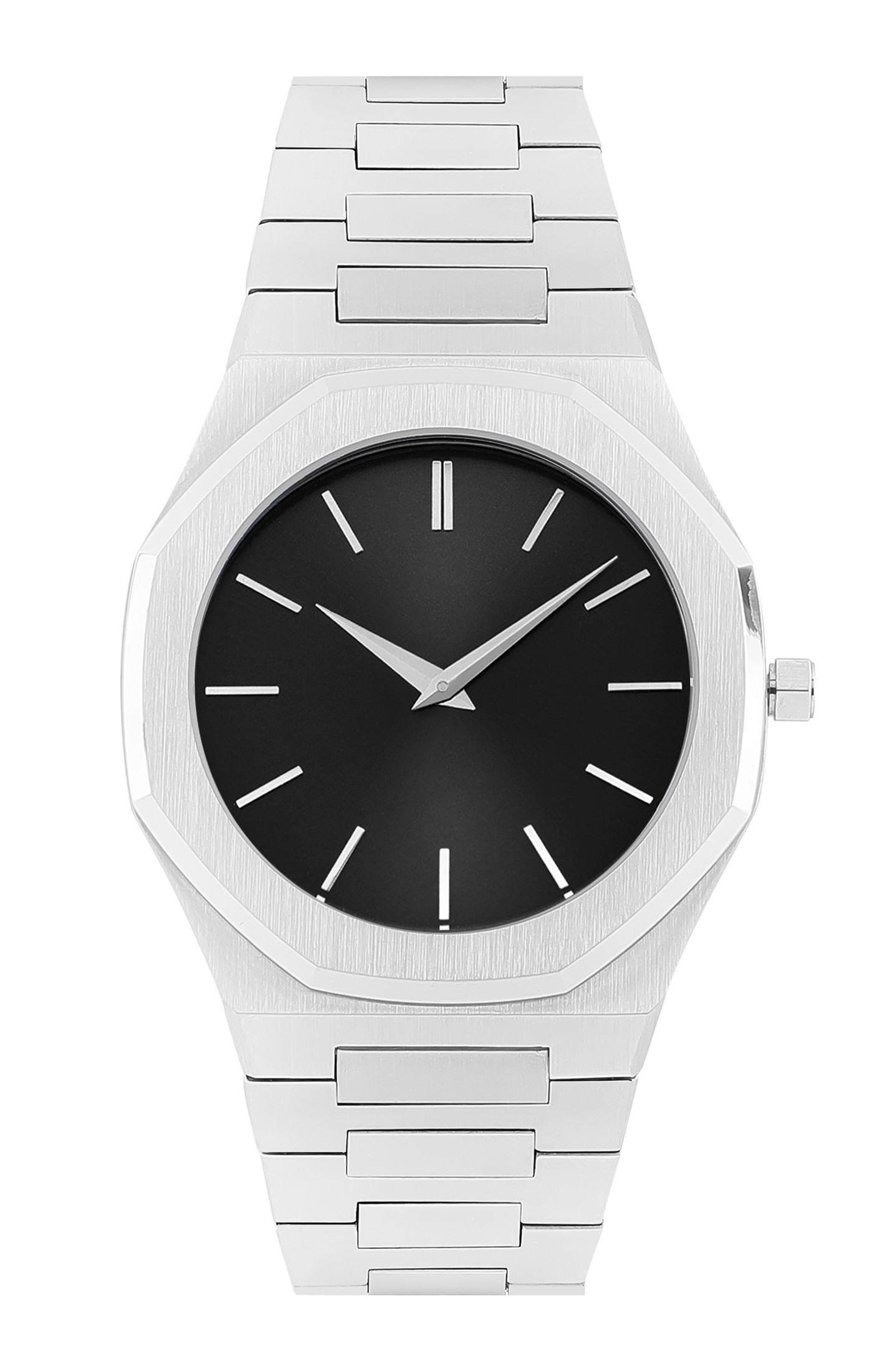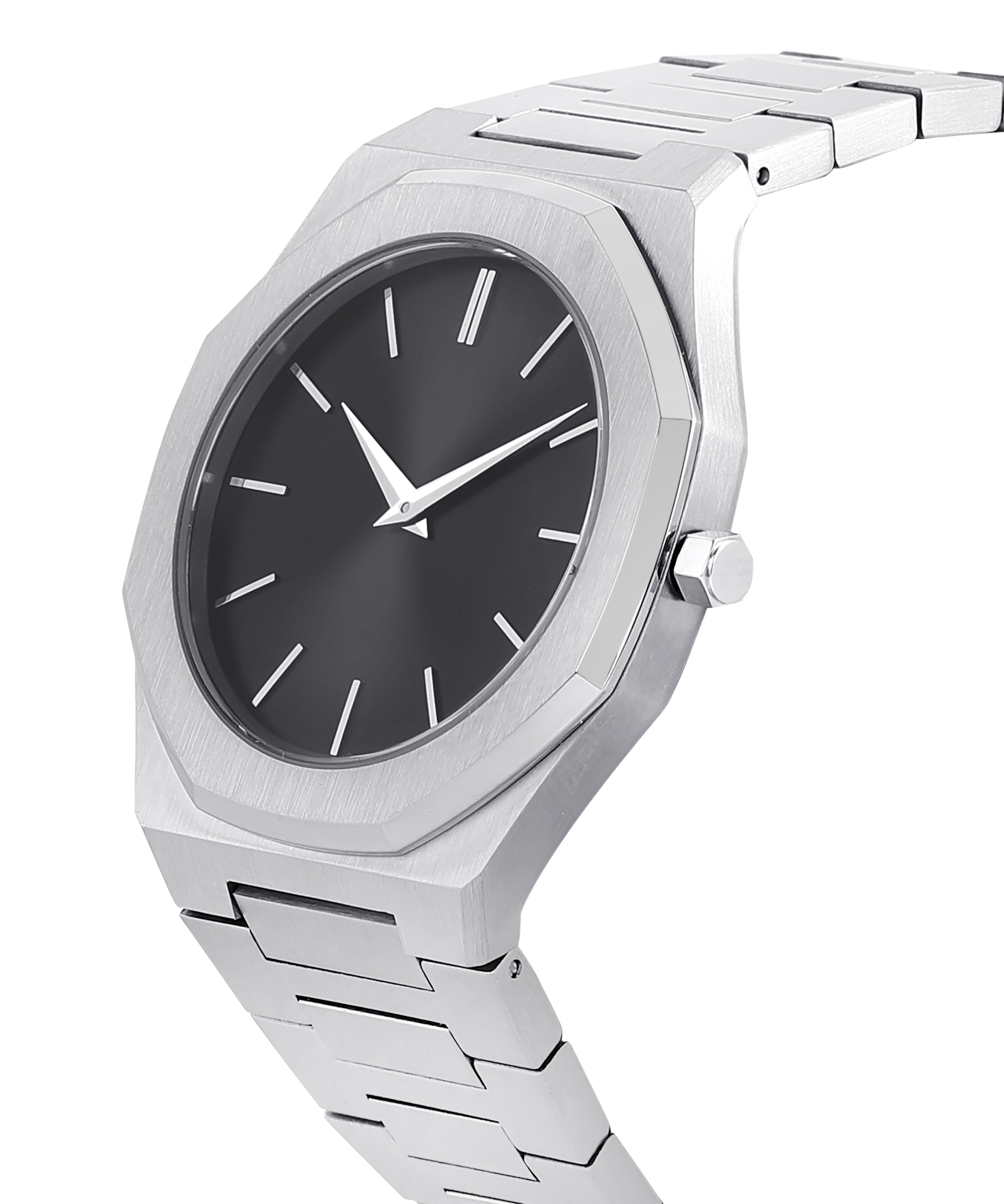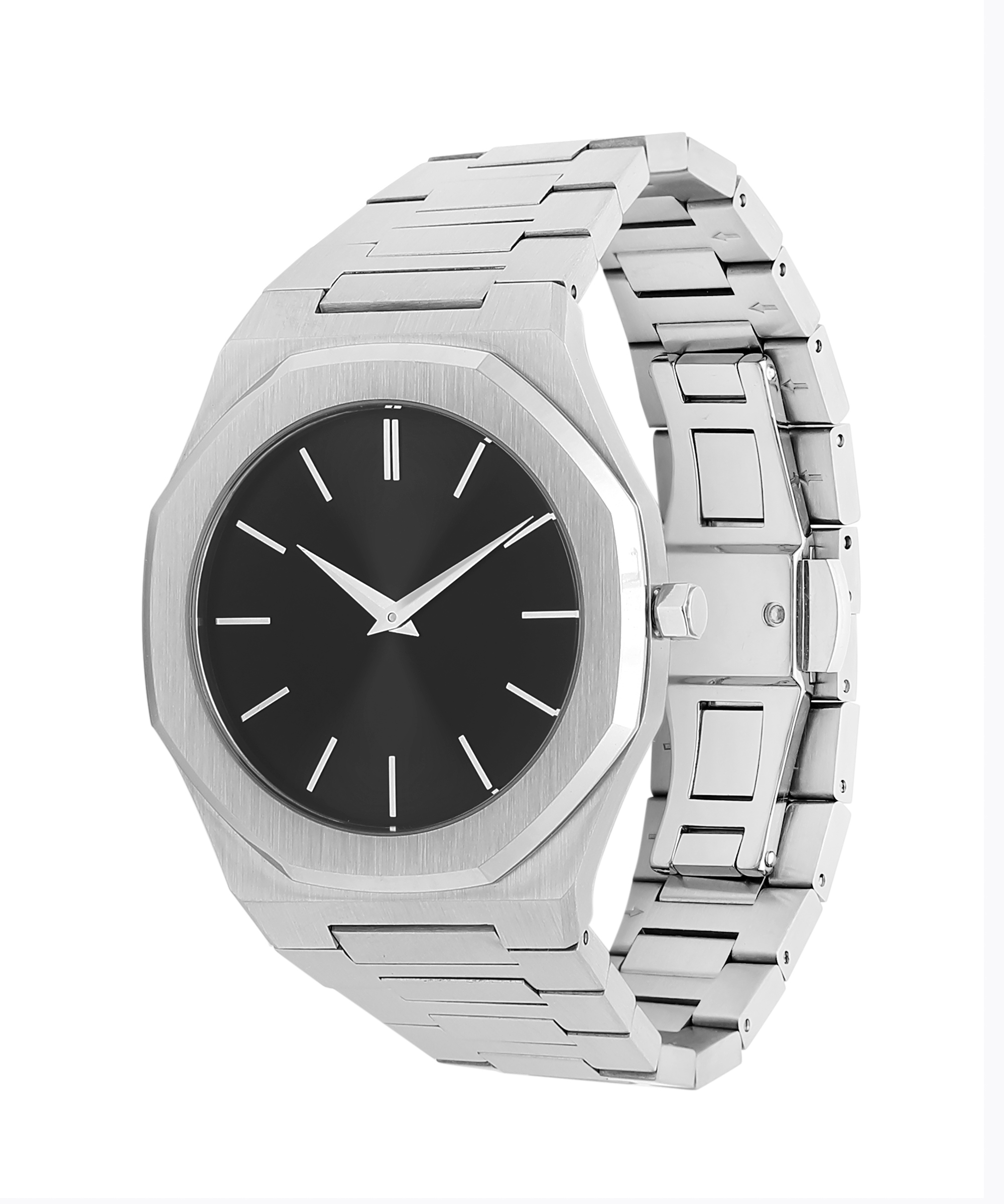 Personalized Sleek Minimalist Watch – Cosmic Black Dial, Silver Steel Strap